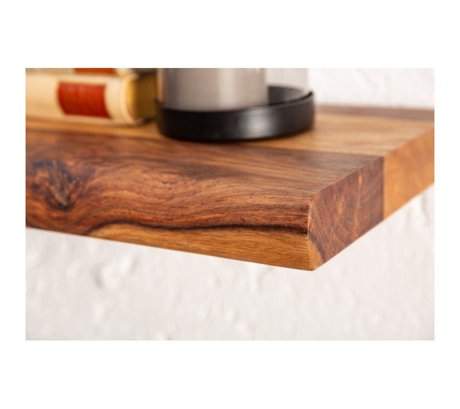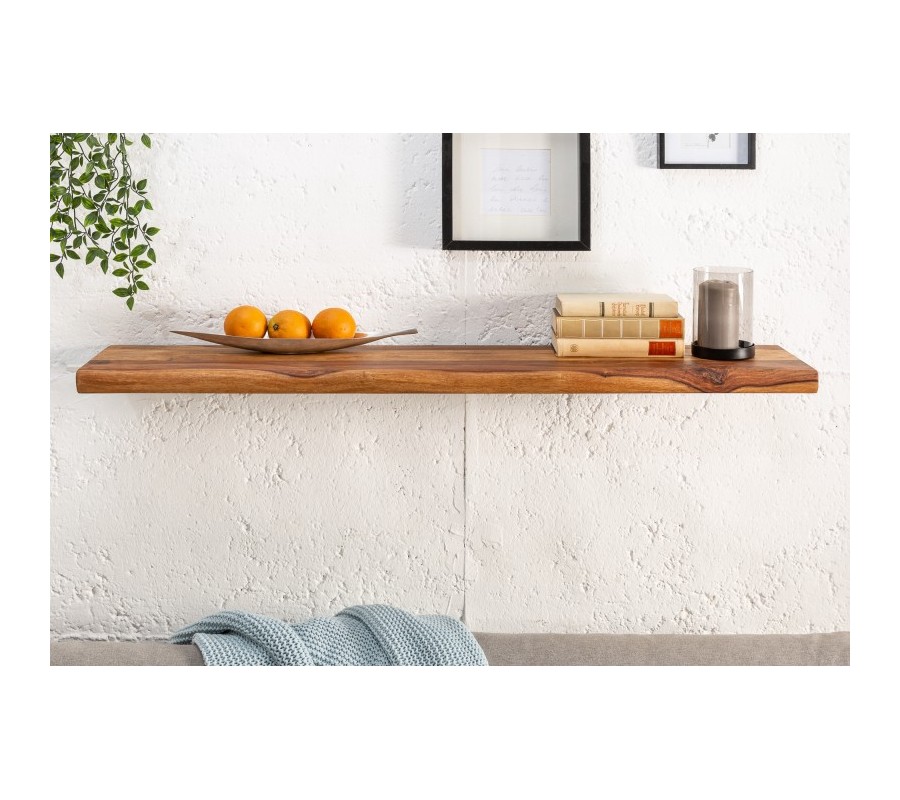 Štýlová nástenná polička Mammut je vyrobená z masívneho palisandrového dreva, ktoré do vášho príbytku vnesie príjemný naturálny nádych. Je skvelým doplnkom každej obývačky, jedálne či pracovne v modernom alebo industriálnom štýle. Na povrchu možno vidieť zaujímavú kresbu dreva, čo spolu so zaoblenými hranami vytvára príjemný elegantný vzhľad. Odporúčame poličku Mammut kombinovať s ďalším masívnym nábytkom v svetlo ladenom interiéri. Skvelú kombináciu vytvorí taktiež so živým rastlinstvom či dekoráciami v industriálnom štýle s prvkami kovu.