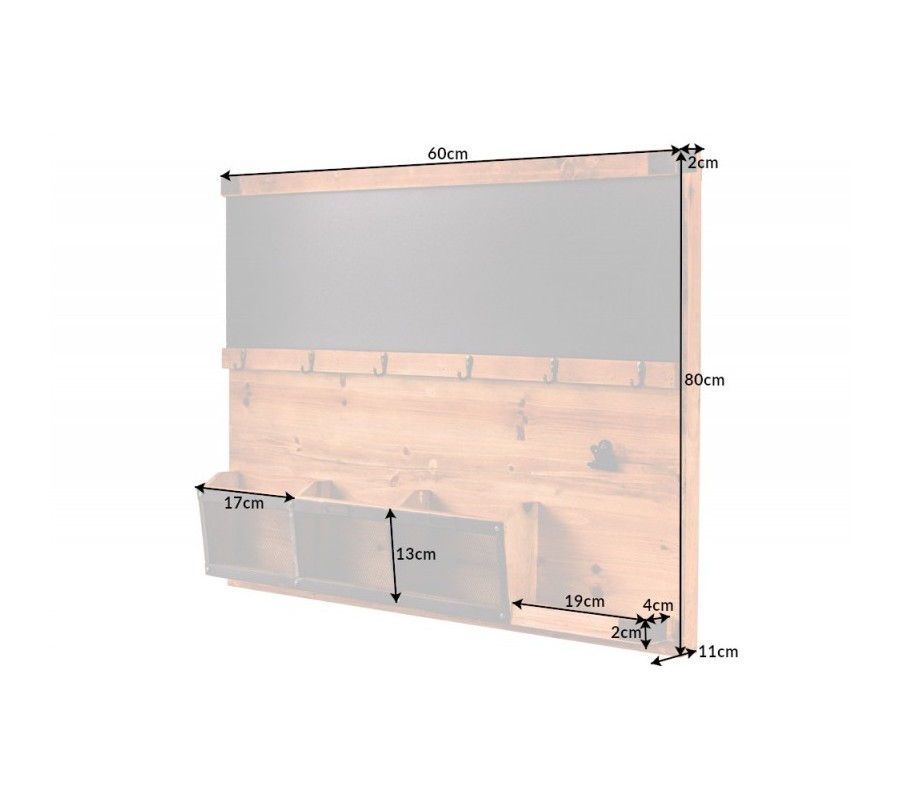 Masívny nástenný organizér Woodcut do predsiene s vešiakmi, poličkou a tabuľou 80cm