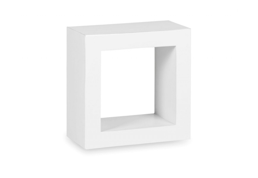 Štýlová moderná nástenná polička Blanc štvorcového tvaru z masívneho dreva mindi bielej farby 40cm