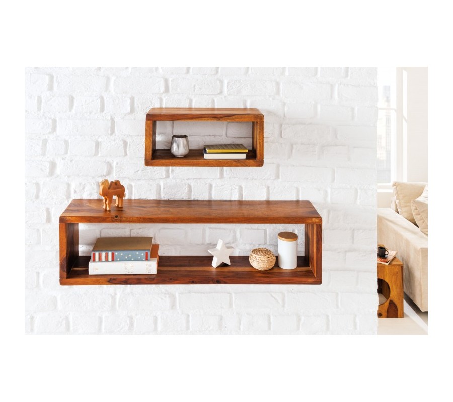 Úložného priestoru nie je naozaj nikdy dosť. Svoj inteteriér si však vďaka setu dvoch nástenných políc Satelli dokážete štýlovo prispôsobiť a uložiť naň čokoľvek do košíkov či boxov. Set pozostáva z jednej väčšej police obdĺžnikového tvaru s rozmermi 94cm x 25cm x 19cm (ŠxVxH) a menšej police s rozmermi 43cm x 22cm x 19cm (ŠxVxH). Konštrukcia oboch políc je vyrobená z kvalitného exotického dreva palisandru v odtieňoch hnedej farby a priehľadná povrchová úprava s lesklým finishom necháva dokonale vyniknúť prirodzenú farbu masívneho dreva. Poličky je možné zavesiť pod seba, vedľa seba či diagonálne. Vďaka krásnemu kvlaitnému drevu sa budú skvelo hodiť do vidiecky ladených obývačiek, vstupných hál či jedální. K spektru hnedých farieb sa budú hodiť akékoľvek zelené či zemité farebné odtiene - či už ste fanúšikom odvážnych farebných kombinácií alebo uprednostňujete jemné teplé tóny béžovej a kapučínovej - prídete si na svoje.