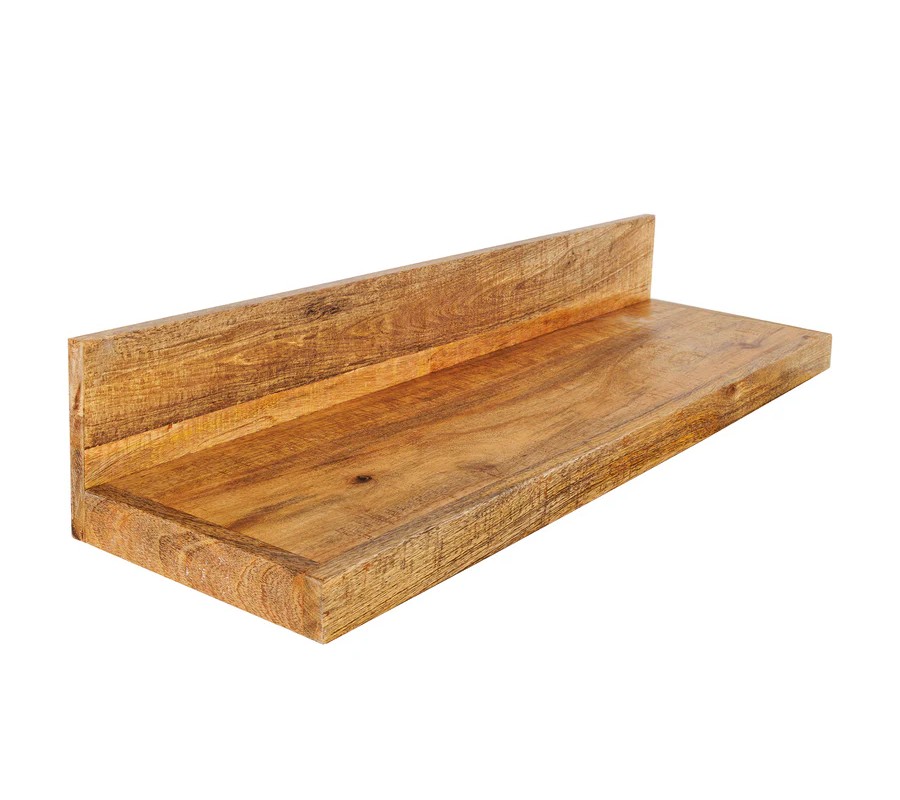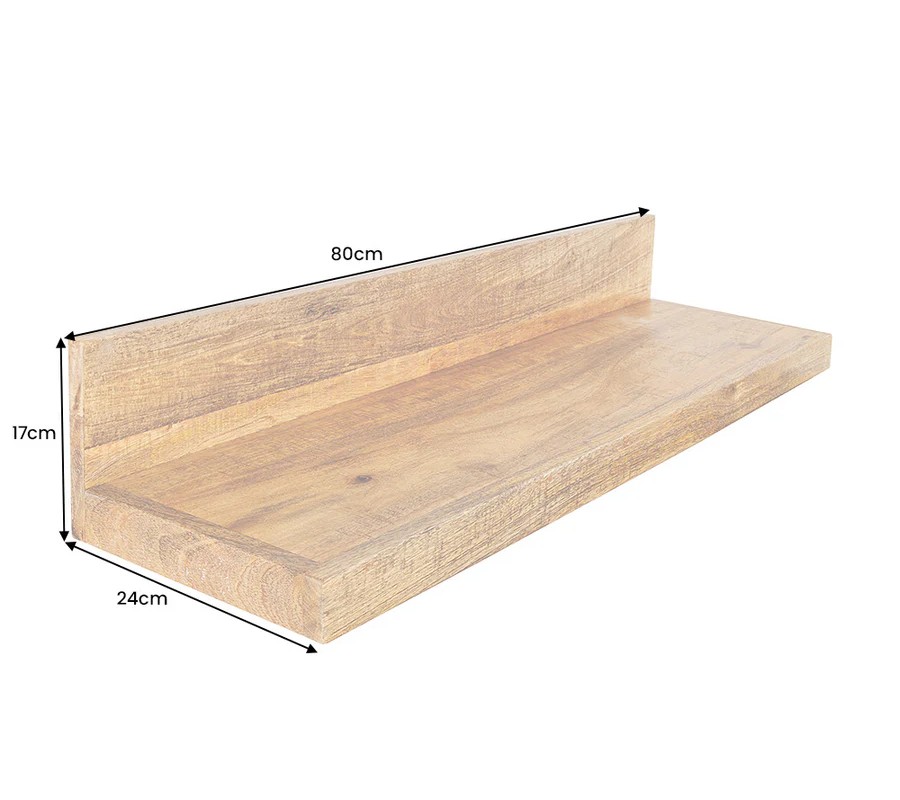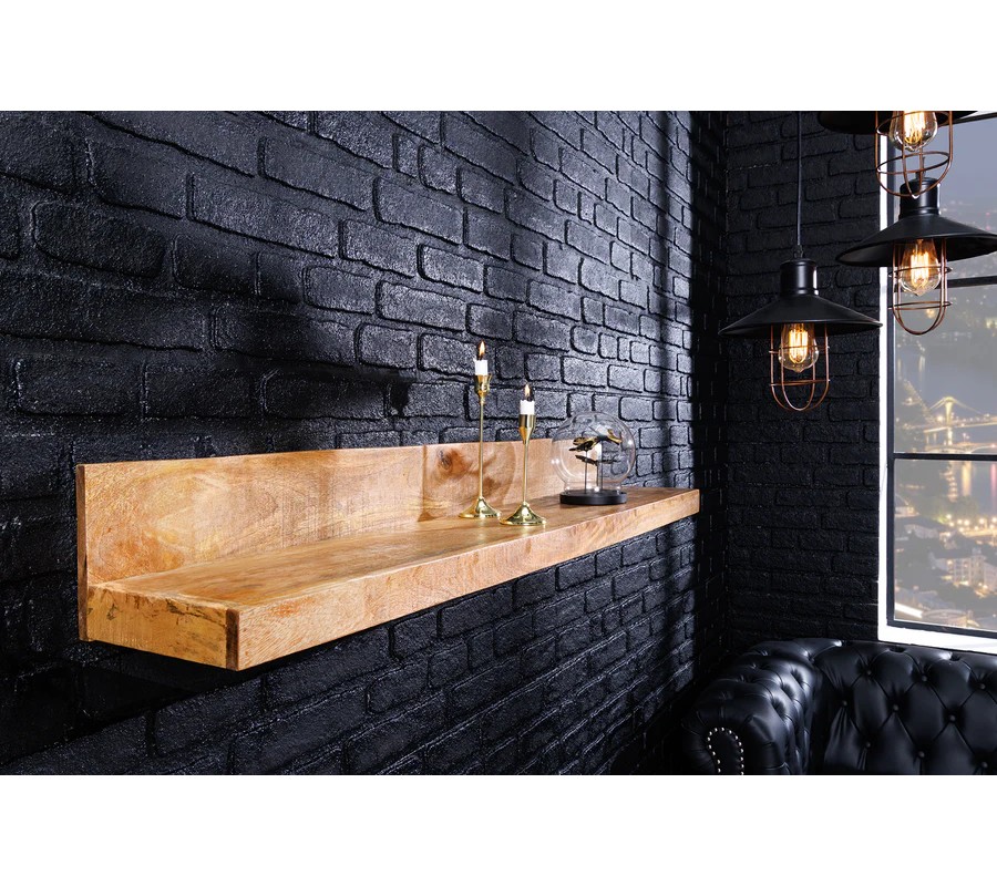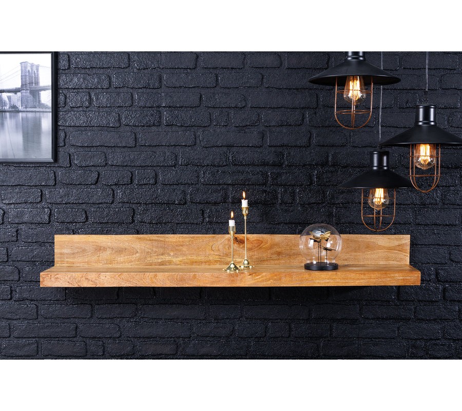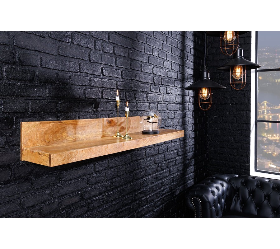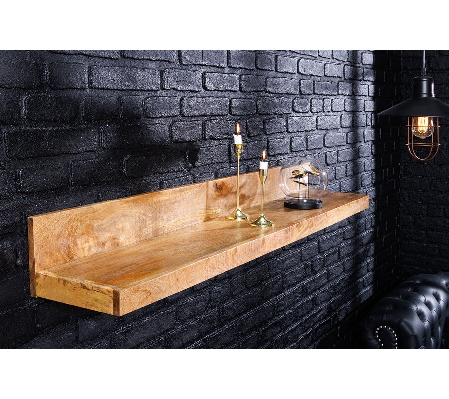 Dizajnová masívna svetlá hnedá nástenná polica Makassar z mangového dreva s vyvýšenou zadnou stranou 80 cm