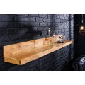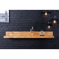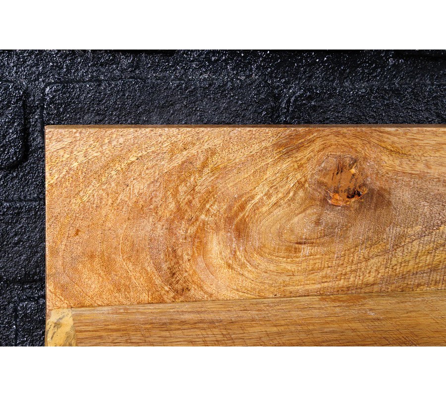 Moderná dizajnová polica Makassar s vyvýšenou zadnou stranou z mangového dreva v naturálnej svetlej hnedej farbe 140 cm