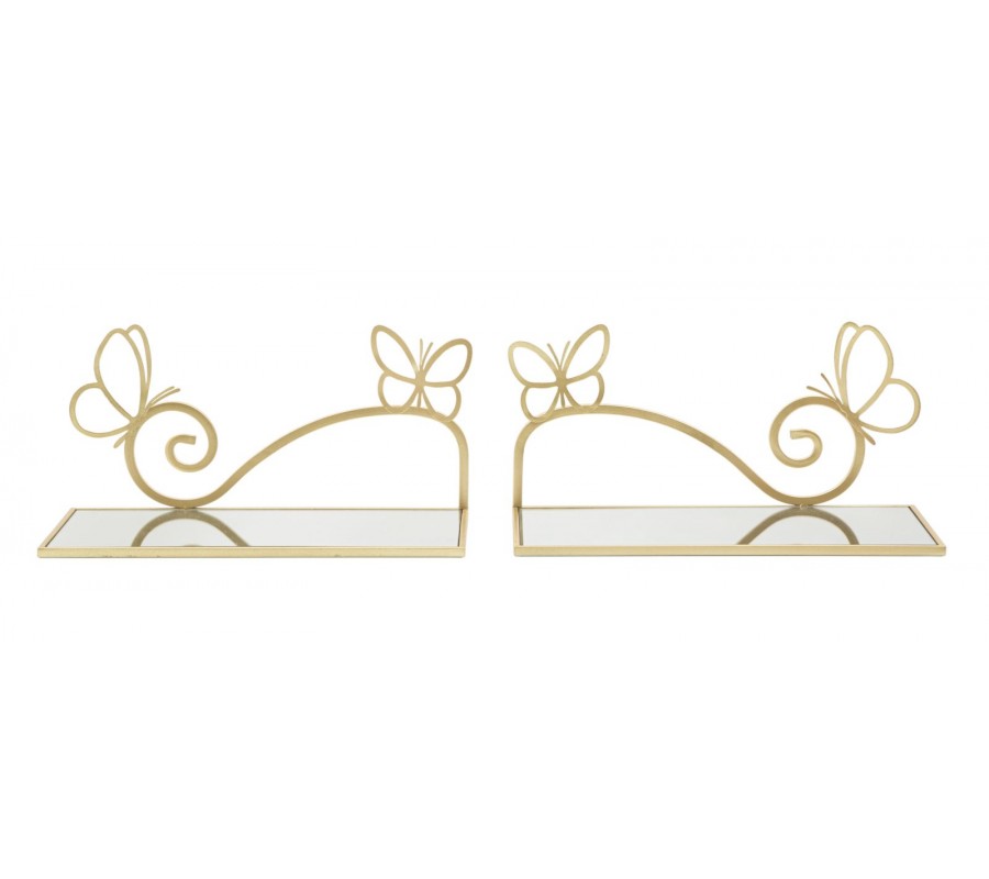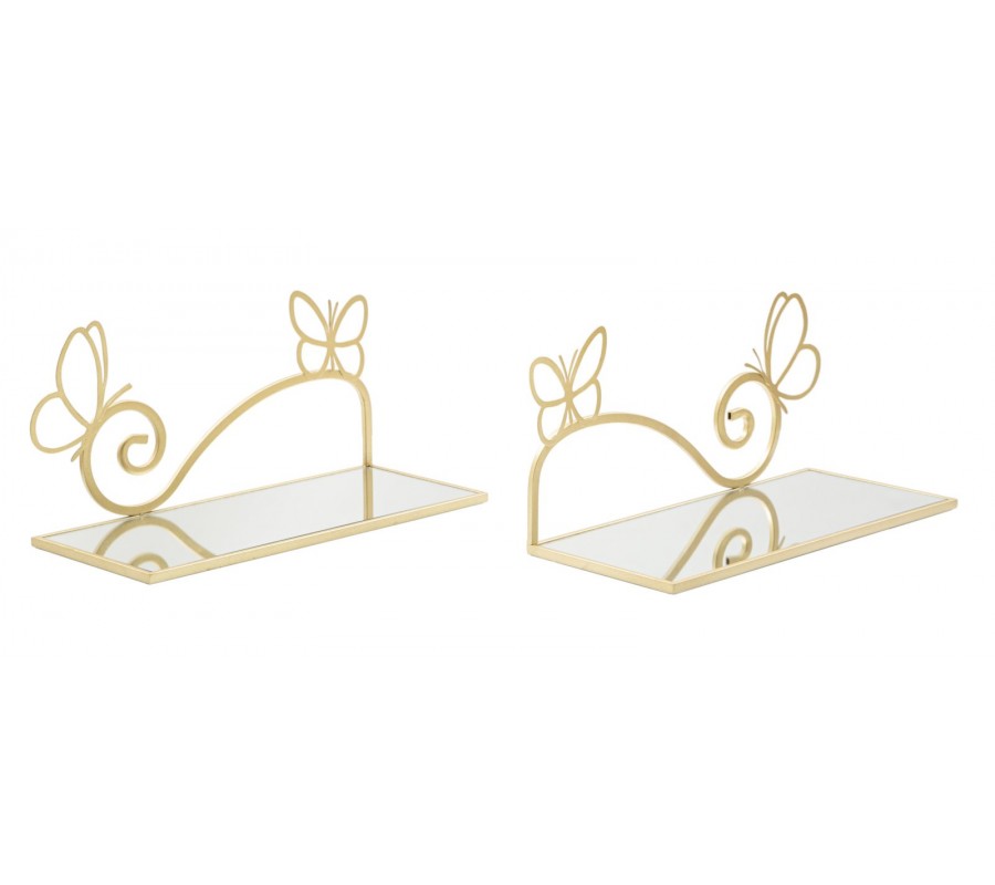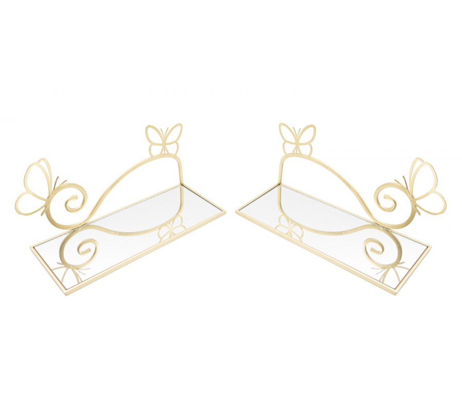 Dizajnová sada obdĺžnikových glamour zrkadlových políc Papillon so zlatým kovovým rámom s dekoratívnymi motýľmi 41 cm