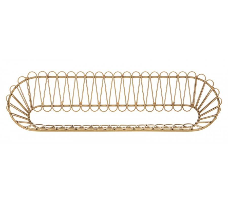 Dizajnová moderná oválna polica Lumia s konštrukciou z kovu s výpletom z prírodného ratanu 44 cm