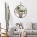 Oblúková nástenná polica Lania v etno štýle kombinuje hnedý ratan s kovovou konštrukciou, čím vytvára unikátny a pevný dizajn. Dve poličky ponúkajú priestor na dekorácie, rastliny alebo drobné predmety, pričom celkový vzhľad zostáva elegantný a vzdušný.