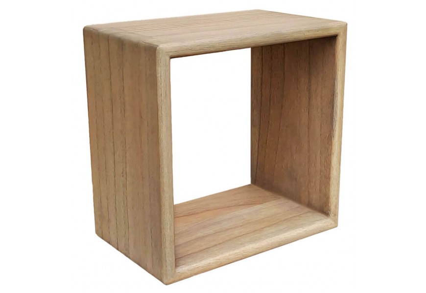 Škandinávska štvorcová polica Bergen hnedej farby z masívneho dreva mindi so zaoblenými rohmi 40 cm