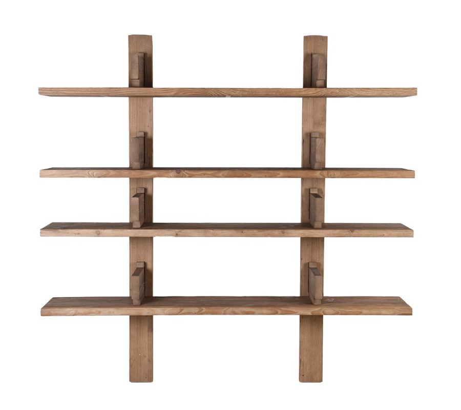 Luxusná vintage štvorúrovňová závesná polica Semba z masívneho svetlohnedého dreva s vertikálnou konštrukciou 182 cm