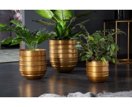 Dizajnový set troch art deco kvetináčov Baneli z kovu zlatej farby s kladivkovým vzorom