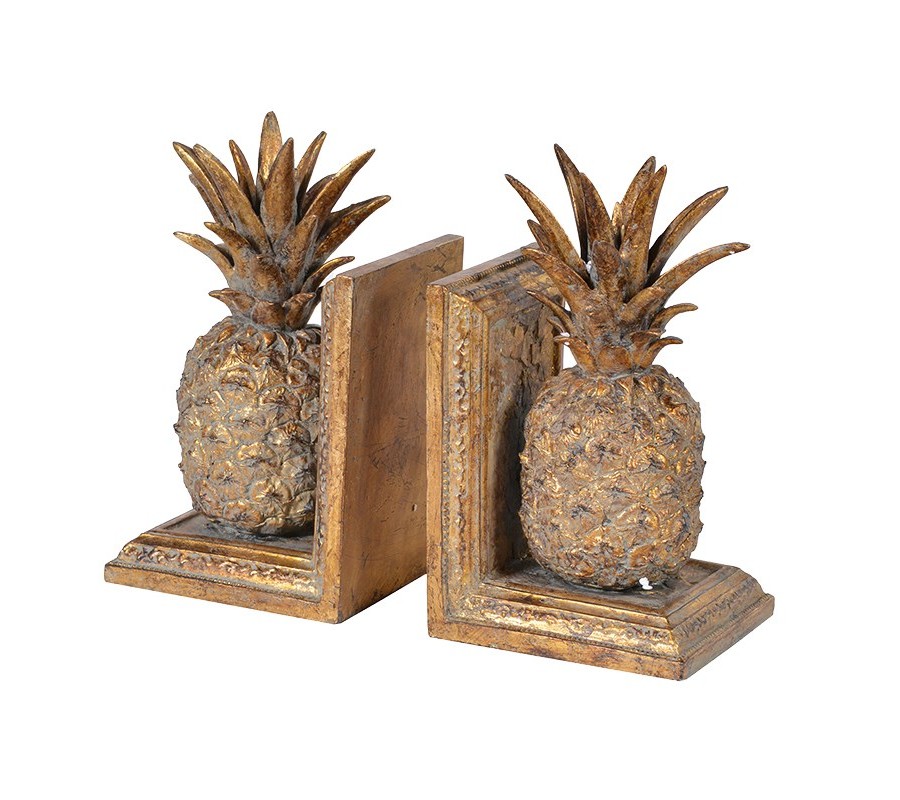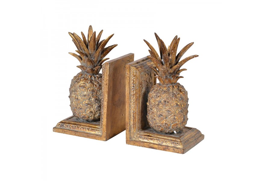 Dizajnové zarážky na knihy s dizajnom ananásu zo živice v zlatej farbe 20cm