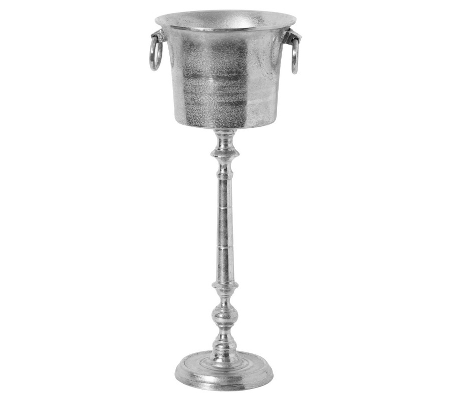 Každý z nás je určite rád obklopený luxusom a niet lepšieho spôsobu ako navnadiť luxusný nádych vo vašom interiéri než so stojanom na šampanské. Exkluzívny stojan na šampanské v podobe dekoračnej nádoby zasadenej do vyzdobenej podstavy z hliníku v striebornom farebnom prevedení určite zaujme vašich hostí a vytvorí jedinečný pocit prepychu. Tento kúsok vynikajúco doplní váš interiér v kombinácií so strieborným nábytkom a dizajnovými doplnkami.
