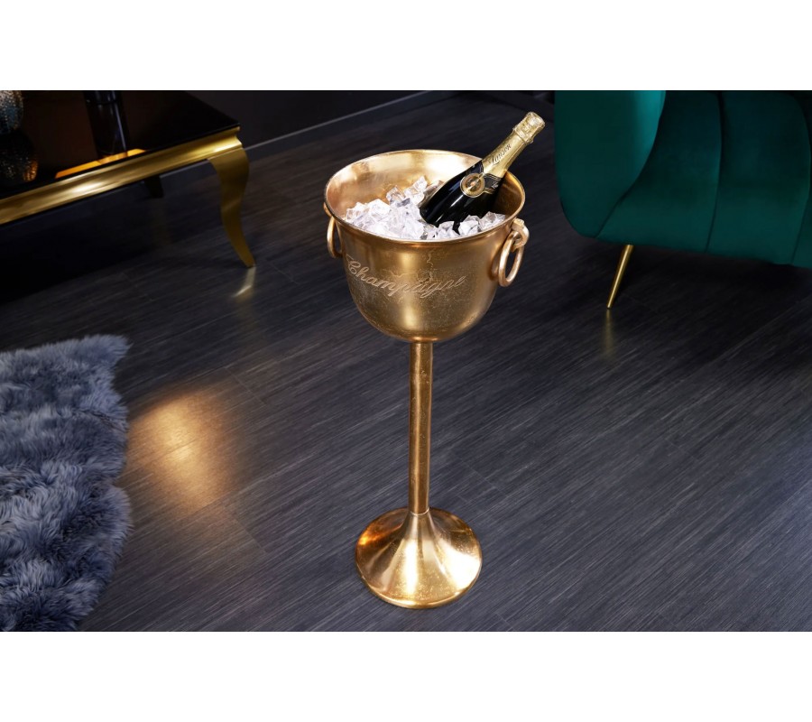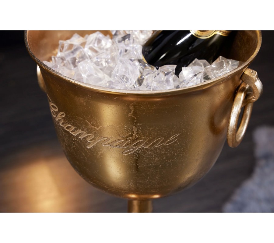 Štýlová nádoba na chladenie šampanského Perlea v antickom zlatom odtieni s dekoratívnym nápisom 80cm