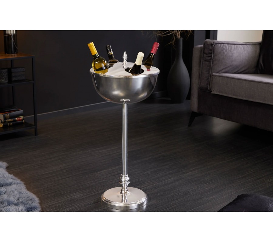 Dizajnová strieborná nádoba na chladenie vína Perlea z kovu s elegantnou pokrývkou 81cm