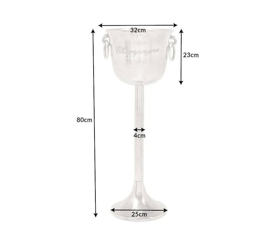 Elegantná nádoba na chladenie šampanského Perlea poteší všetkých milovníkov tohto nápoja, ktorí si ho radi vychutnajú v kruhu rodiny či priateľov. Výborne poslúži aj ako dar, keďže okrem praktického využitia zaujme aj svojím elegantným dizajnom. Nádoba je vyrobená z kovu a nesie sa v dizajnovej matnej striebornej farbe, vďaka čomu dostáva elegantný a nadčasový nádych. K luxusnému vzhľadu priespieva aj úzka vysoká podstava, ktorá v kombinácii so samotnou nádobou vytvára dizajn podobný poháru na šampanské či víno. Celkový elegantný vzhľad dotvára jemný dekoratívny nápis zdobiaci povrchovú úpravu a dva okrúhle úchyty po bokoch. Nádoba na chladenie šampanského Perlea krásne a prakticky doplní vaše barové priestory, jedáleň či obývačku a spríjemní vám chvíle pri oslavách či rodinných stretnutiach.