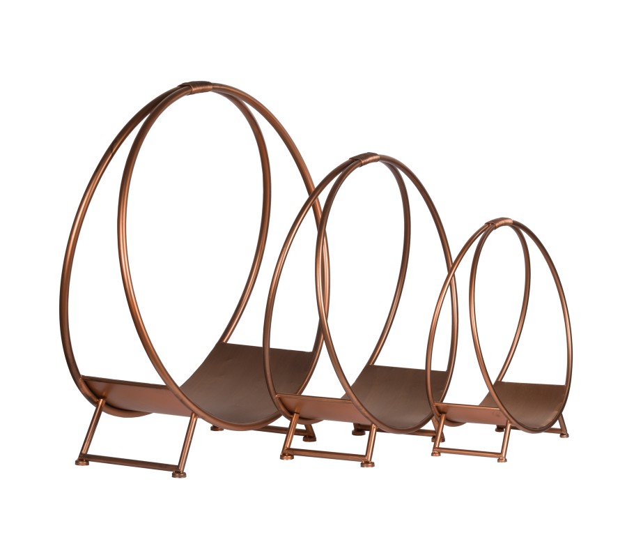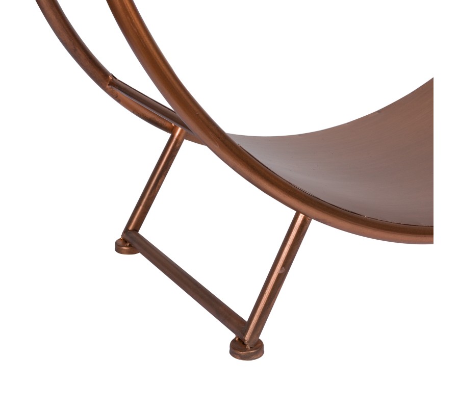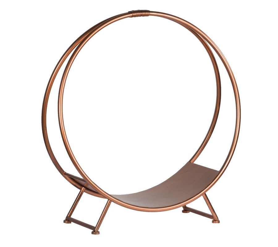 Štýlový stojan na drevo ku krbu sa hodí vďaka minimalistickému dizajnu do akéhokoľvek priestoru. Rám je vyrobený z kovu. Vďaka príjemnej medenej farbe sú ľahko kombinovateľné