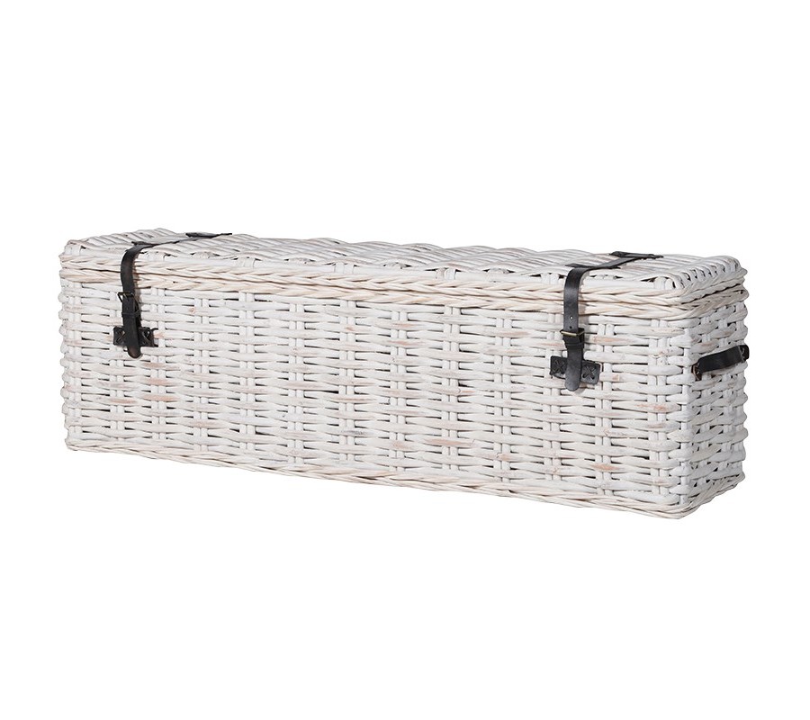 Ratanová biela multifunkčná truhlica Bert s dvomi prackami v tmavej farbe vo vidieckom štýle 162cm
