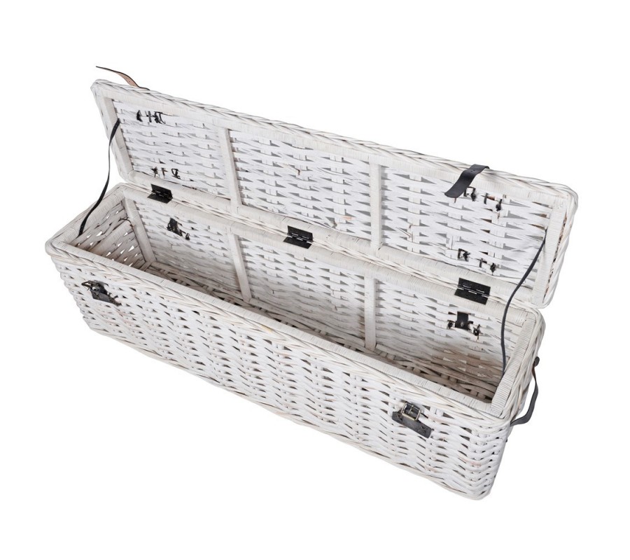 Ak hľadáte multifunkčný úložný priestor v kompaktných rozmeroch, ktorý môžete navyše kamkoľvek a kedykoľvek premiestniť- ratanový kufrík Bert v bielom prevedení s dvomi čiernymi štýlovými prackami bude tou správnou voľbou pre vás. Univerzálna biela bude vhodnou variantou aj do menších spální, obývačiek či predsiení, kde je presvetlenie priestoru priam žiadúce. Truhlicu môžete využiť ako štýlovú dekoráciu a zároveň úložný box na vankúše, prikrývky či postelnú bielizeň. Skvelo sa bude hodiť k masívnemu vidiecky či provensálsky ladenému nábytku ako napríklad komody či konferenčné stolíky s kreslami s precízne vyrezávanými detailmi v bielej či krémovej farbe. Na spestrenie interiéru môžete k truhlici ladiť vankúše s florálnou potlačou v pastelových farbách.