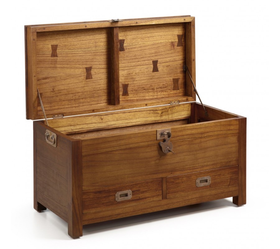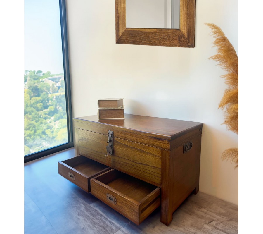 Dizajnová uzamykateľná truhlica Star z masívu s dvomi zásuvkami 90cm