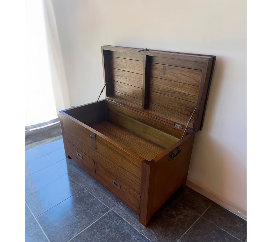 Luxusná truhlica z našej kolekcie koloniálneho nábytku Star je praktickým doplnkom pre každého, kto potrebuje úložné miesto naviac a zároveň túži svoj príbytok doplniť o štýlový kúsok. Truhlica je vyrobená z masívneho dreva mindi v príjemnom teplom dubovom odtieni, ktorý do vášho interiéru vnesie nádych prírody a domova. Stojí na menších nožičkách a otváranie zvrchu umožní praktický prístup k všetkému, čo si dnu vložíte. Disponuje tiež dvomi praktickými zásuvkami. Truhlica je uzamykateľná. Odporúčame kombináciu s ďalšími kúskami z našej kolekcie Star a doplnkami v svetlejších naturálnych odtieňoch.