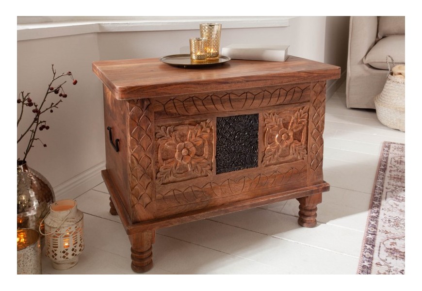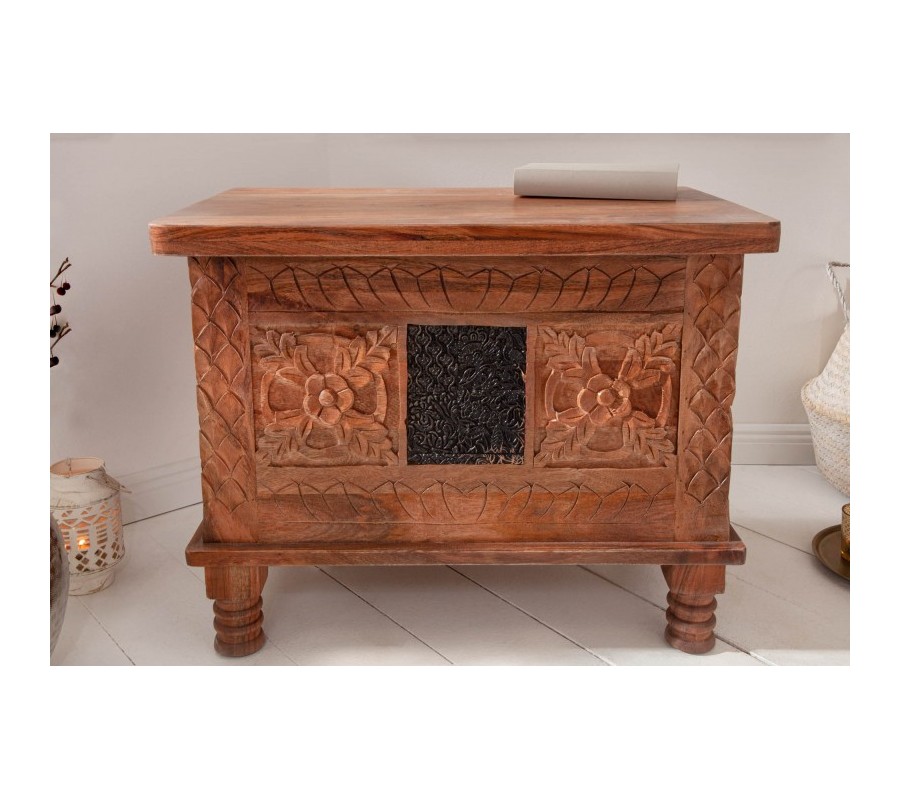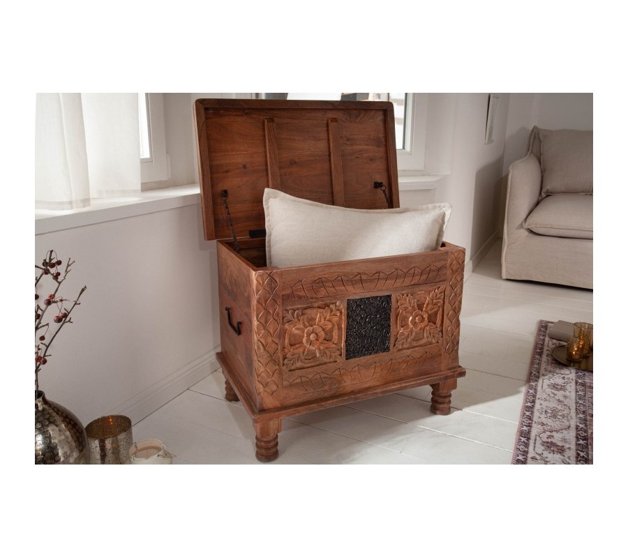 Orientálna vyrezávaná truhlica Rosthall z masívneho dreva s úložným priestorom 65cm