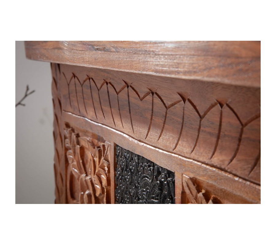 Truhlica Rosthall je jedinečným a originálnym kúskom, ktorý sa nesie v orientálnom štýle. Je zaujímavá najmä vďaka nádhernému vyrezávaniu v tvare kvetov a prírodných motívov, ktoré zdobia jej prednú časť. Celkový dizajn taktiež dopĺňajú vyrezávané nožičky, ktoré zároveň zabezpečujú výbornú stabilitu. Truhlica Rosthall je vyrobená z kombinácie masívneho mangového a akáciového dreva, ktorá vám zaručí skvelú kvalitu a nádherný prírodný vzhľad. Truhlicu je vďaka priestrannému úložnému priestoru možné využiť na uskladnenie rôznych predmetov vo vašej obývačke či spálni. Skvelo vynikne najmä v svetlejších priestoroch v kombinácii s masívnym nábytkom a čalúnenou sedačkou či posteľou.
