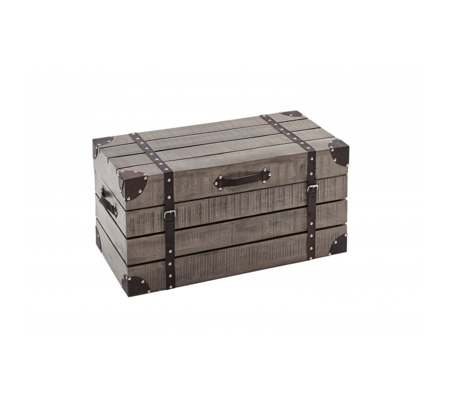Štýlová truhlica Pendle II je zaujímavým kúskom, ktorý má všestranné využitie. Disponuje úložným priestorom vhodným na rôzne predmety ako vankúše, deky či časopisy. Po zavretí je tiež možné truhlicu využiť ako stolík, napríklad vo vašej obývačke. Je vyrobená z masívneho mangového dreva a vďaka svojmu prevedeniu pôsobí prírodným dojmom. Vďaka sivému náteru sa dá ľahko kombinovať so širokou škálou farieb. Dizajn dopĺňajú kožené prvky a remene v tmavohnedej farbe. Skvelo vynikne najmä v industriálne ladených priestoroch.