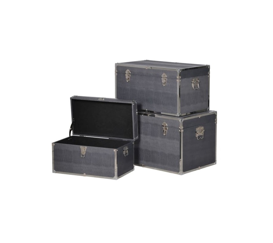 Štýlový set troch kožených vintage truhlíc Stirling v sivom prevedení s koženým poťahom a s kovovými prvkami 68cm