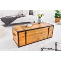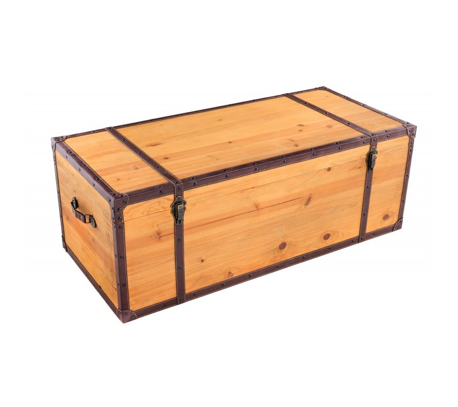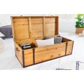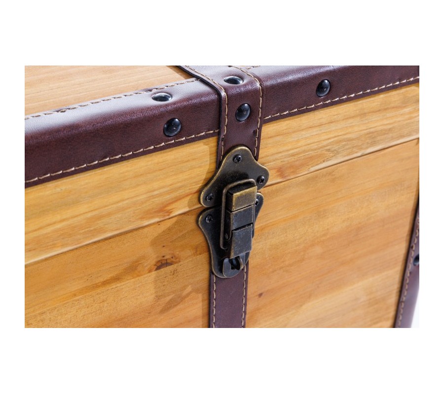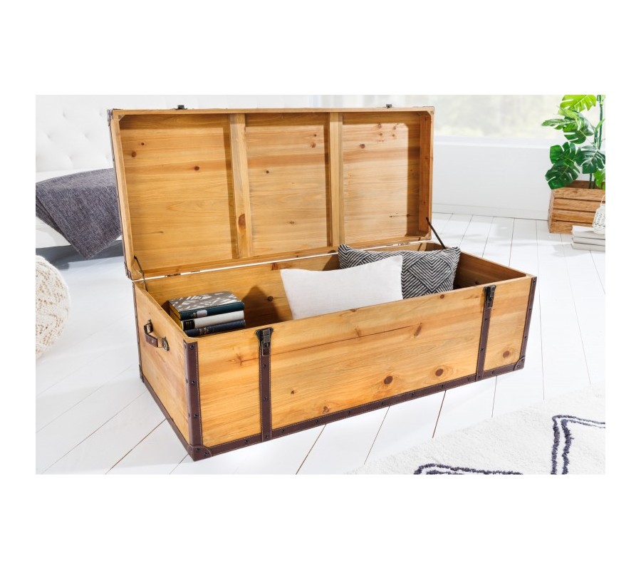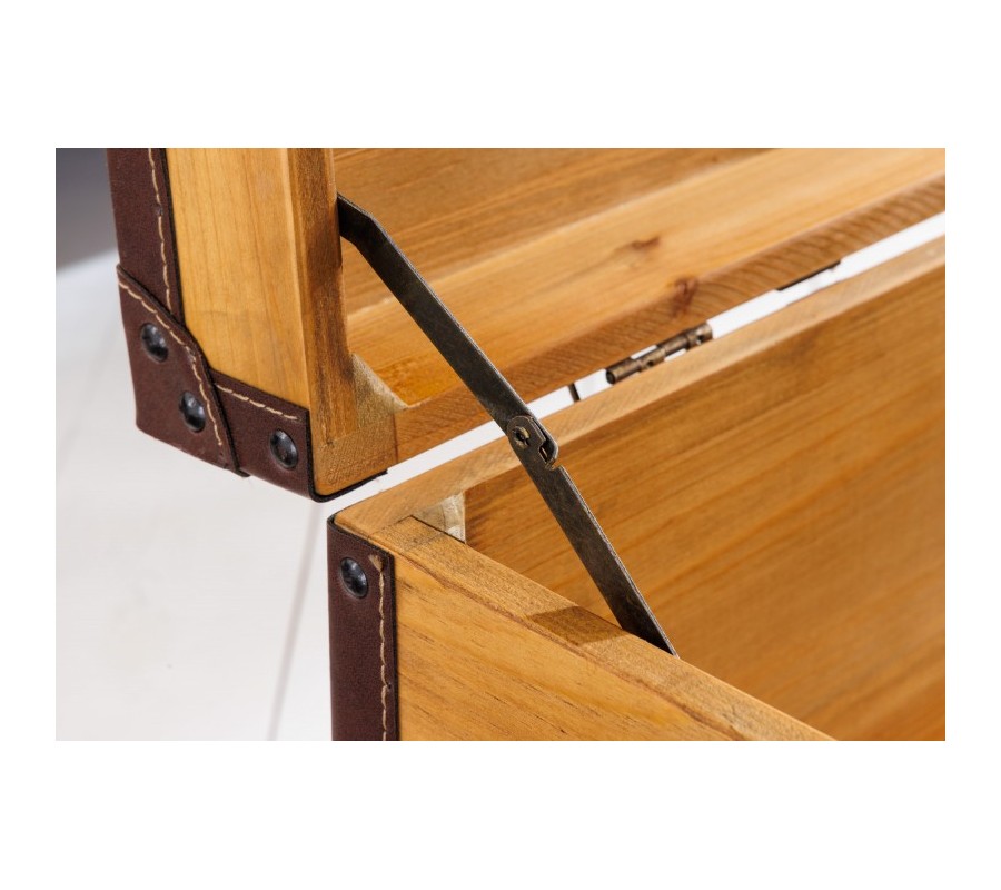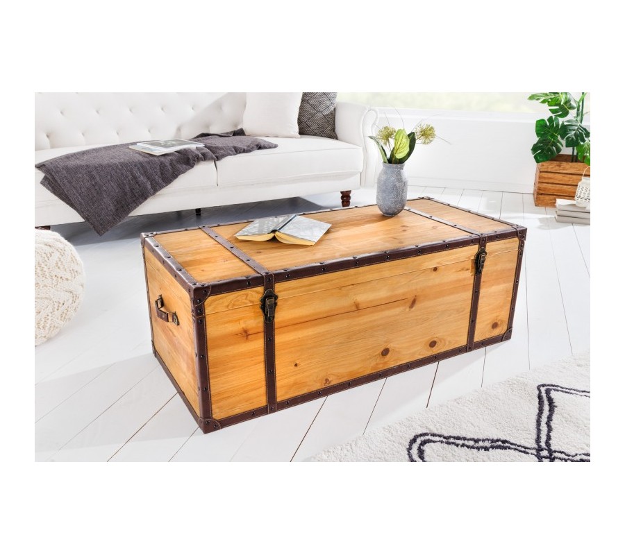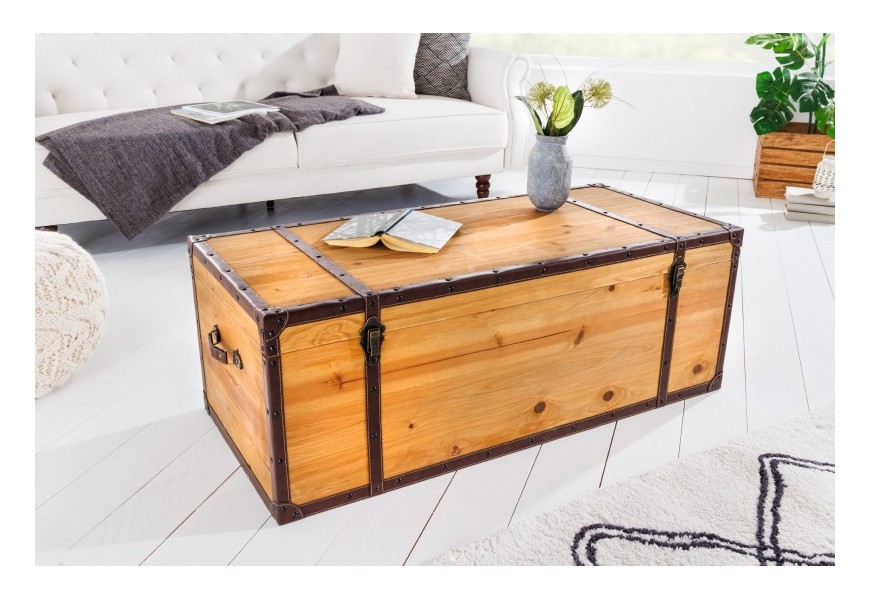 Moderná truhlica Ratta je unikátnym dizajnovým kúskom s nádychom koloniálneho štýlu, ktorý môžete využiť ako dekoráciu s úložným priestorom, alebo ako konferenčný stolík, ktorý na seba upúta pozornosť. Industriálna truhlica Ratta je vyrábaná z lakovaného masívneho dreva vo svetlo hnedom vyhotovení s naturálnym vzhľadom, ktorý je doplnený eko koženými popruhmi v tmavohnedej farbe. Koloniálna truhlica Ratta taktiež disponuje kovovými prvkami vo vintage čiernej farbe. Jedinečný vzhľad dizajnovej truhlice Ratta vynikne napríklad v moderných obývačkách v kombinácií so svetlým čalúnením sedačiek, s bielym a svetlo hnedým masívnym nábytkom, alebo v industriálnych obývačkách s kovovým a masívnym nábytkom.