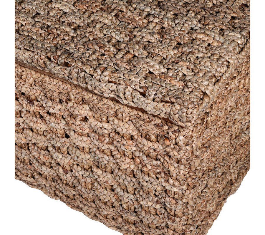 S dostatočne rozsiahlym úložným priestorom je ideálnym riešením pre štýlové uskladňovanie v miestnosti vo vidieckom alebo etno štýle. Výplet s uzlami pokrýva celú plochu truhlice, je precízne spracovaný z prírodných vlákien hyacintu vodného. Zaujme taktiež svojou škálou odtieňov prírodných hnedých farieb s jemnými prechodmi a jedinečnou pravidelnou štruktúrou.
