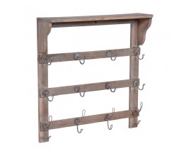 Štýlový drevený industriálny nástenný vešiak Herr s poličkou v hnedej farbe s kovovým dekorom v bronzovej farbe 77 cm