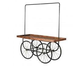 Industriálny odkladací vozík Katar s čiernou kovovou konetrukciou a masívnou drevenou doskou 190cm