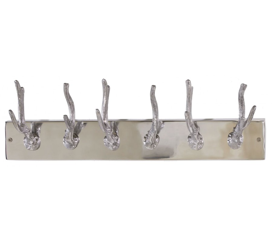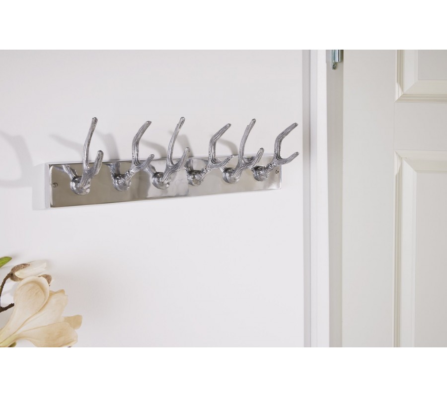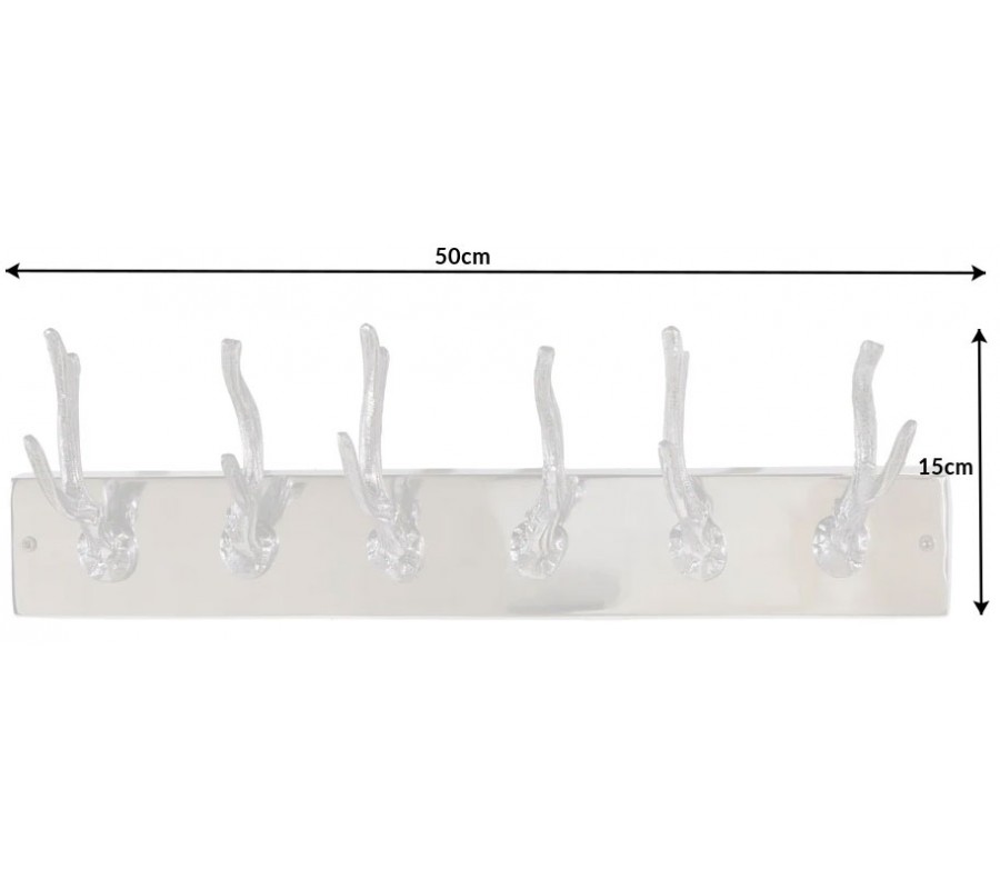Luxusný dizajnový nástenný vešiak Jeleň obsahuje 6 háčikov na zavesenie oblečenia ale aj módnych doplnkov ako sú klobúky, šatky a kabelky. Nástenný vešiak Jeleň pripomína jelenie parohy, ktoré rozžiaria Váš interiér. Tento dekoračný vešiak je vyrobený z kvalitnej zliatiny hliníka. Rozmery: 50cm x 15cm x 8cm (ŠxVxH).