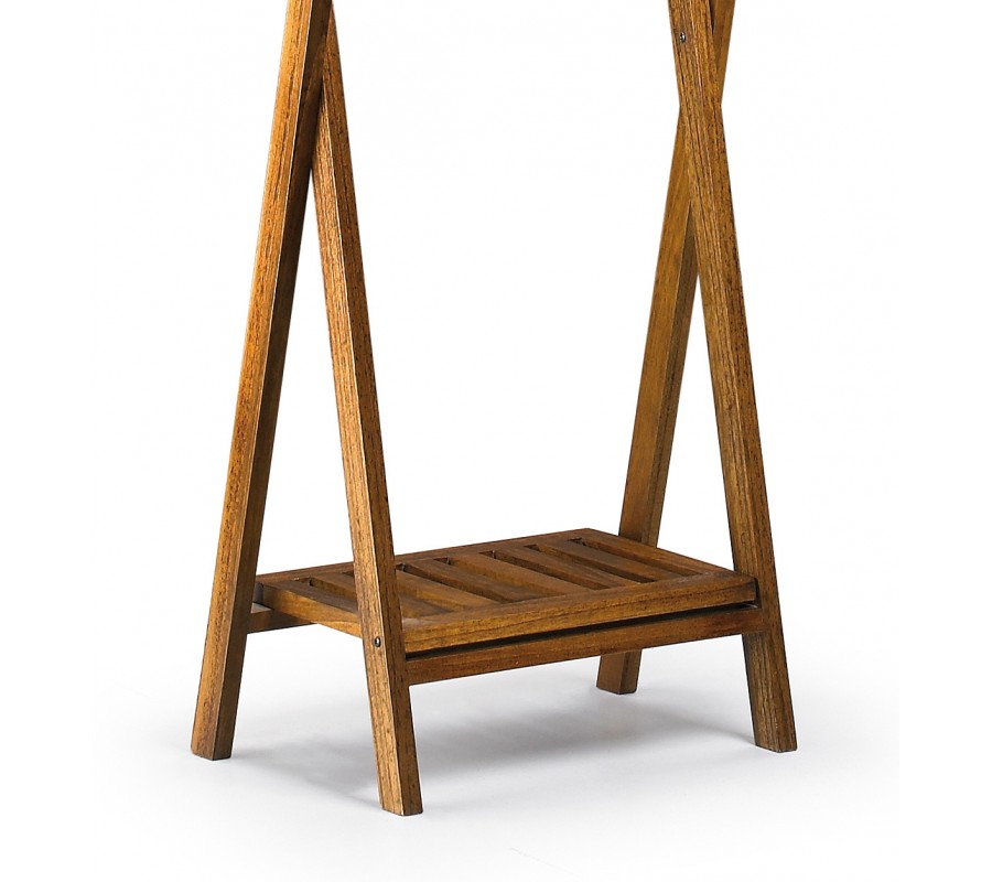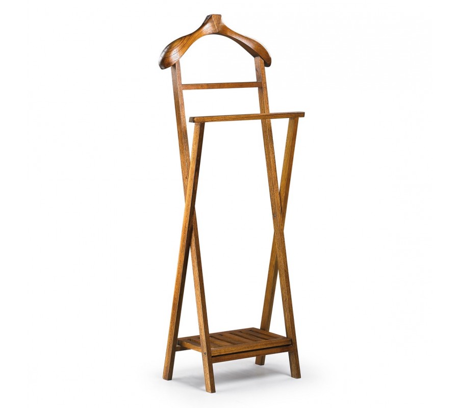 Jedinečný nemý sluha Star je skvelým pomocníkom do každej klasicky či rustikálne, ale i modernejšie ladenej spálne či šatníkovej miestnosti. Je vyrobený z kvalitného masívneho dreva mindi v príjemnej hnedej farbe, ktorá poľahky zapadne do svetlejšie i tmavšie ladených priestorov. Stojan disponuje praktickým priestorom na zavesenie vášho oblečenia, vešiakom a taktiež poličkou vhodnou na topánky či tašky. Je tak skutočne praktickým a dizajnovým doplnkom, ktorý vďaka svojmu klasickému vzhľadu zapadne skutočne kamkoľvek. Odporúčame taktiež kombináciu s ďalšími kúskami z našej luxusnej kolekcie nábytku Star.