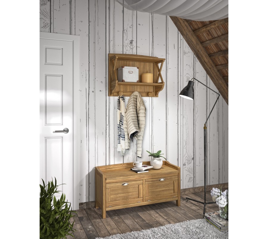 Elegantný moderný nástenný vešiak Verona z masívneho drevas tromi háčikmi a úložným priestorom 70cm