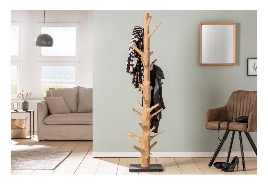 Štýlový Stojan na kabáty Boneli sa vyznačuje svojím nevšedným prírodným dizajnom. Jeho konštrukcia je vyrobená z kvalitného masívneho dreva v prírodnej svetlohnedej farbe, ktorý je špecifický svojím vzhľadom. Jednotlivé výrastky z kmeňa tvoria dizajnové vešiaky a vašim priestorom dodajú svieži naturálny nádych. Vďaka výrobe z masívneho mangového dreva je každý kúsok jedinečný svojím tvarom a dizajnom. Tento exkluzívny stojan vďaka svojmu prírodnému vzhľadu vynikne predovšetkým v etno alebo industriálne ladených priestoroch vstupných hál, chodieb či predsiení. Svoje miesto si nájde aj v alternatívne ladených priestoroch firiem alebo hotelov. Vhodnú kombináciu vytvorí napríklad v kombinácii s retro čalúneným kreslom či sedačkou a masívnym konferenčným stolíkom.