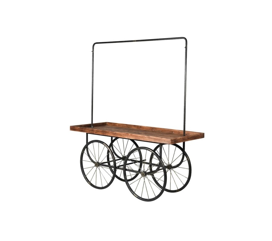 Industriálny odkladací vozík Katar s čiernou kovovou konetrukciou a masívnou drevenou doskou 190cm
