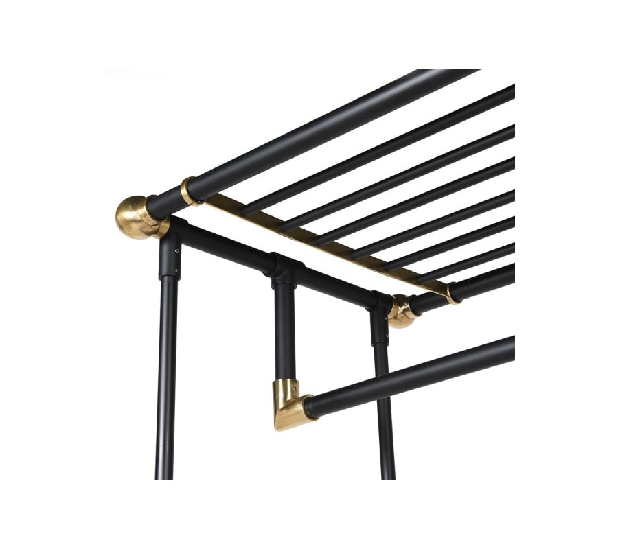 Glamour obdĺžnikový vešiak Trolley na kolieskach s čiernou konštrukciou a mosadznými detailmi 165 cm
