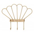 Etno atypický svetlo hnedý kovový nástenný závesný vešiak Lania s tromi hákmi a florálnou dekoráciou s ratanovým vzhľadom 37 cm