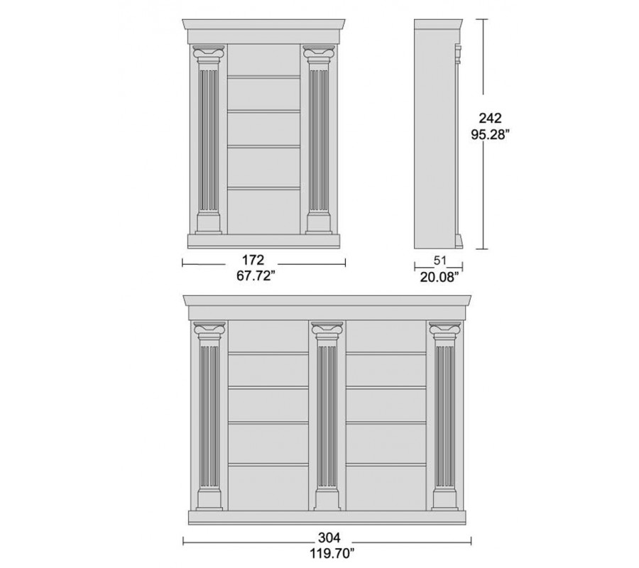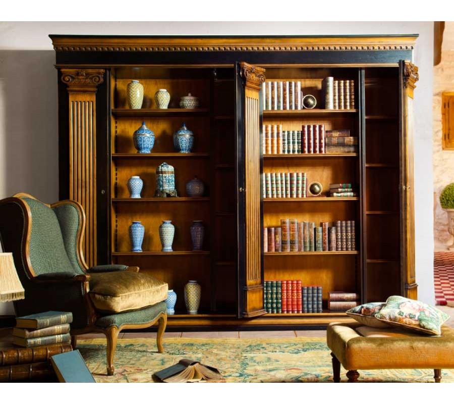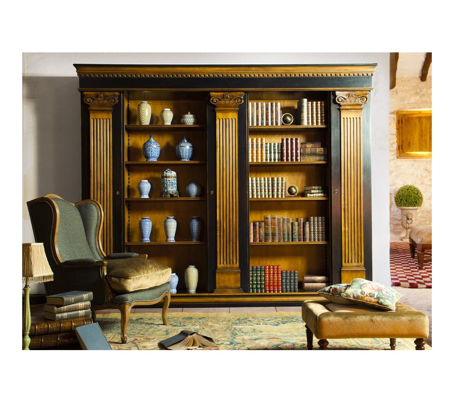 Luxusná antická knižnica Countriside vyniká svojím antickým dizajnom a luxusným prevedením, ktorému dominujú tri antické mohutné stĺpy na jej prednej strane. Knižnica poskytuje priestor pre pre odkladanie kníh a dekorácii vo forme piatich výškovo nastavieľných poličiek, ktoré sú spolu so zadnou stranou a ručne vyrezávanou výzdobou vo forme antických sĺpov v jednotnom farebnom patinovanom prevedení. Tajomstvom pre návštevníkov môže ostať fakt, že štýlové antické stĺpiky predstavujú dvierka, za ktorými sa nachádza ďalší diskrétny odkladací priestor. Knižnica sa hodí do luxusných reprezentačncýh priestorov firiem, kancelárii advokátov či hotelových hál vyzdobenými ďalšími antickými architektonickými prvkami.