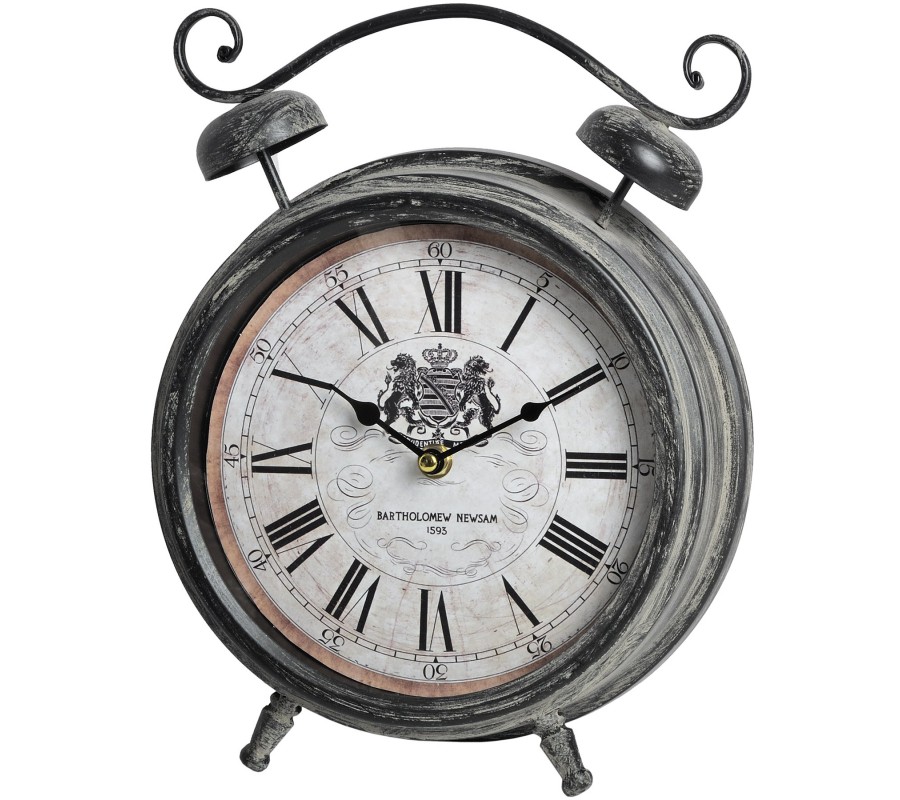 Elegantné stolové hodiny v retro štýle. Biely ciferník s rímskymi číslicami sú zväčšeninou klasického budíka.