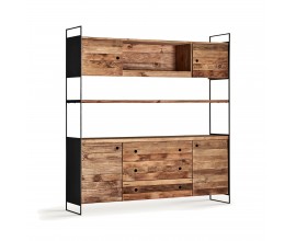 Industriálny príborník Meredith z masívneho dreva s kovovou podstavou v čiernom prevedení 178cm