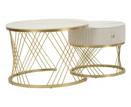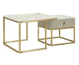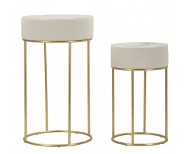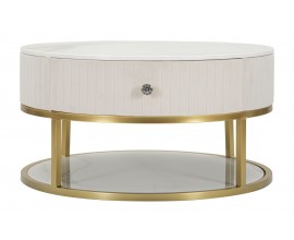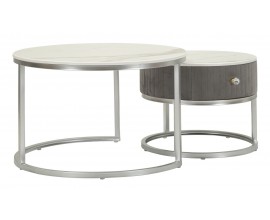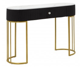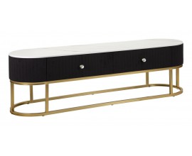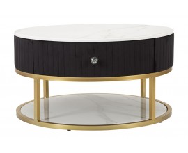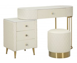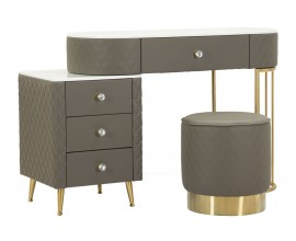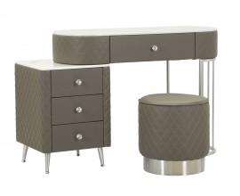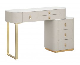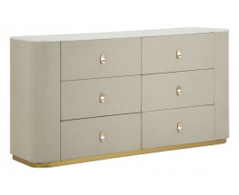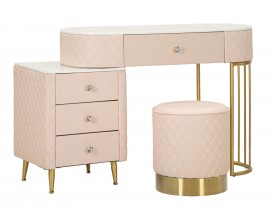 Dominantným prvkom kolekcie je zamatové čalúenie v elegantných odtieňoch bielej, ružovej a čiernej, korunované luxusnými úchytkami z brúseného skla. Kryštálový vizuál podčiarkuje glamour charakter nábytku a výborne korešponduje s metalickými kovovými prvkami v zlatej farbe. Vrchné dosky s mramorovým dizajnom ešte zdôrazňujú nádych exkluzivity. Oblé tvary a štíhle kovové podstavy sú inšpirované siluetami nábytku v art deco štýle.
