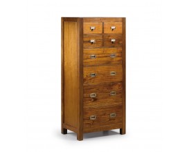 Luxusný nábytok kolekcie STAR je ručne vyrábaný nábytok z masívneho koloniálneho dreva MINDI hrubej kresby vhodný do moderného aj do rustikálneho priestoru. Nábytok je vhodný do priestorov, ktoré potrebujú oživenie v podobe masívneho dreva v tmavohnedej farbe so zachovalou štruktúrou na jeho povrchu. Nábytok má hrubú dominantnú kresbu, ktorá je vhodná pre oživenie bledých interiérov. Kvalitná povrchová úprava je jemná na dotyk a zároveň je maximálne funkčná. Výrobca s viac ako 30 ročnými skúsenosťami v tejto kolekcii nábytku ponúka sortiment vhodný pre zariadenie štýlovej kúpeľne pomocou kúpeľňovej skrinky či kúpeľňových poličiek v tmavej drevenej farbe. Pre vybavenie štýlovej jedálne kolekcia ponúka rozkladacie jedálenské stoly z dreva v rôznych rozmeroch. Viaceré modely konferenčných stolíkov  spolu s presklenými vitrínami a televíznymi stolíkmi sú vhodné pre štýlové zariadenie vašich obývacích izieb. Tak isto kolekcia ponúka kvalitné konzolové stolíky a botníky pre zariadenie predsiene nábytkom z kvalitného masívneho dreva Mindi.