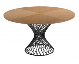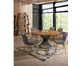 Škandinávsky okrúhly jedálenský stôl Nordica Clara z dreva svetlo hnedej farby s čiernou kovovou podstavou 137cm