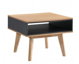 Škandinávsky príručný stolík Nordica Clara vo svetlo hnedej farbe s čiernym otvoreným priestorom prevedenie dub 60cm