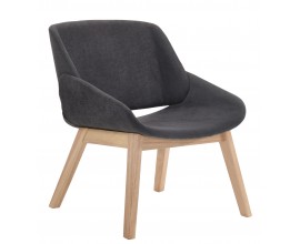 Škandinávske kreslo Nordica Clara v zaoblenom tvare so svetlo hnedými masívnymi nožičkami a tmavo sivým čalúnením 69cm