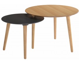 Moderný set okrúhlych príručných stolík Nordica Clara zo svetlo hnedého dreva s masívnymi dubovými nožičkami 64cm