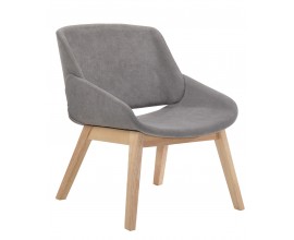 Dizajnové škandinávské kreslo Nordica Clara so sivým čalúnením so svetlo hnedými masívnymi nožičkami dub 69cm