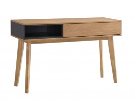 Škandinávsky konzolový stolík Nordica Clara zo svetlo hnedého dreva so zásuvkou a čiernou poličkou 120cm