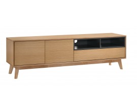 Moderný drevený TV stolík Nordica Clara s dvoma dvierkami a zásuvkou vo svetlo hnedej farbe s dvoma čiernymi poličkami 170cm