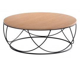 Moderný okrúhly konferenčný stolík Nordica Clara so svetlo hnedou vrchnou doskou s čiernou kovovou podstavou 90cm